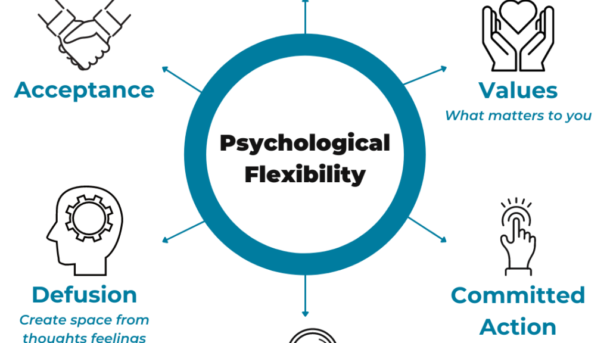 انعطافپذیری روانشناختی یعنی توانایی حضور در لحظه حال (آگاهی از تجربههای حال حاضر مانند افکار و احساسها)، پذیرش تجربههای درونی به جای جنگیدن با آنها، و حرکت در جهت ارزشهای شخصی حتی در مواجهه با سختیها.